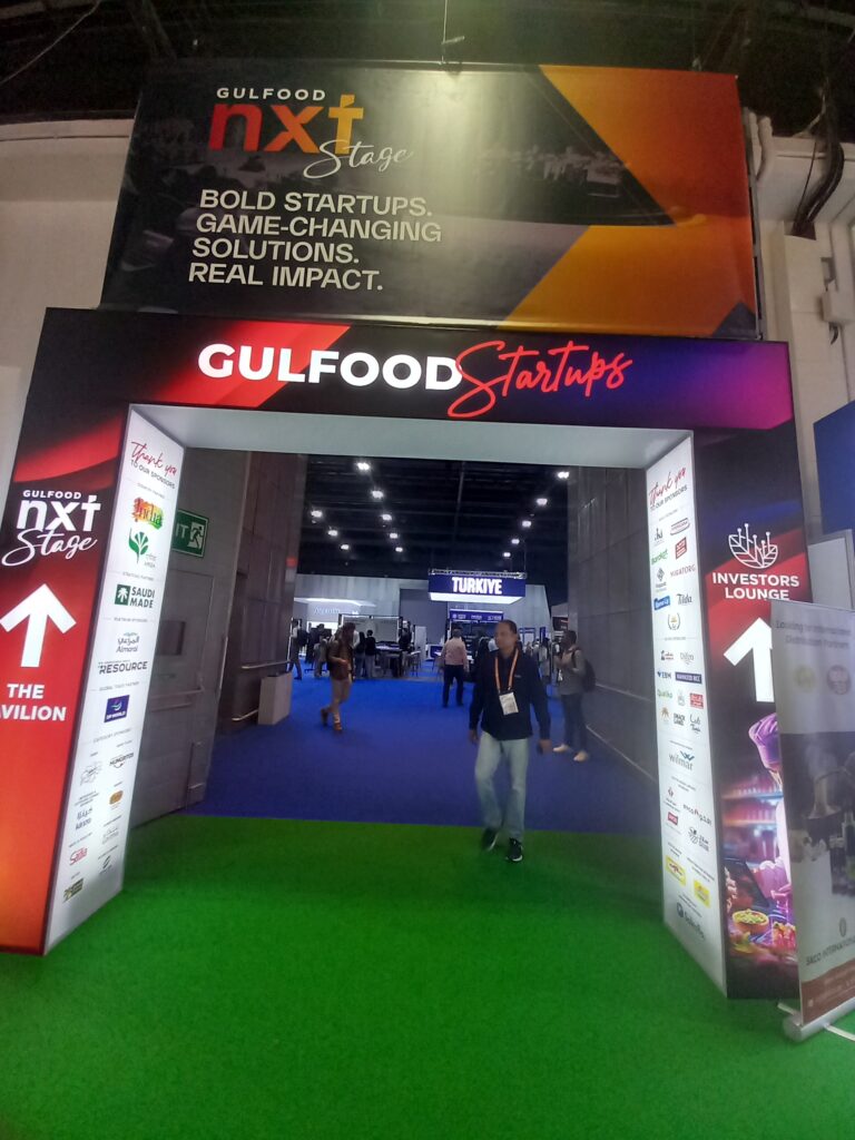 本年の展示会では、食品分野の技術革新やビジネス動向に焦点を当てた公式プログラムとして「Gulfood nxt」が実施されていました。会場内にはステージが設けられ、FoodTech 500ランキングの発表、代替タンパク、食品サプライチェーンのデジタル化、食品ロス対策、循環型技術などをテーマとしたセッションやパネルディスカッションが開催されていました。また、スタートアップ企業によるピッチイベントや投資家との交流機会も設けられており、食品分野における技術動向やビジネスモデルに関する議論が行われていました。これらのプログラムから、Gulfoodが食品取引にとどまらず、食品産業における技術・投資・ビジネス動向を扱う国際的なプラットフォームとしての役割を担っていることが確認されました。